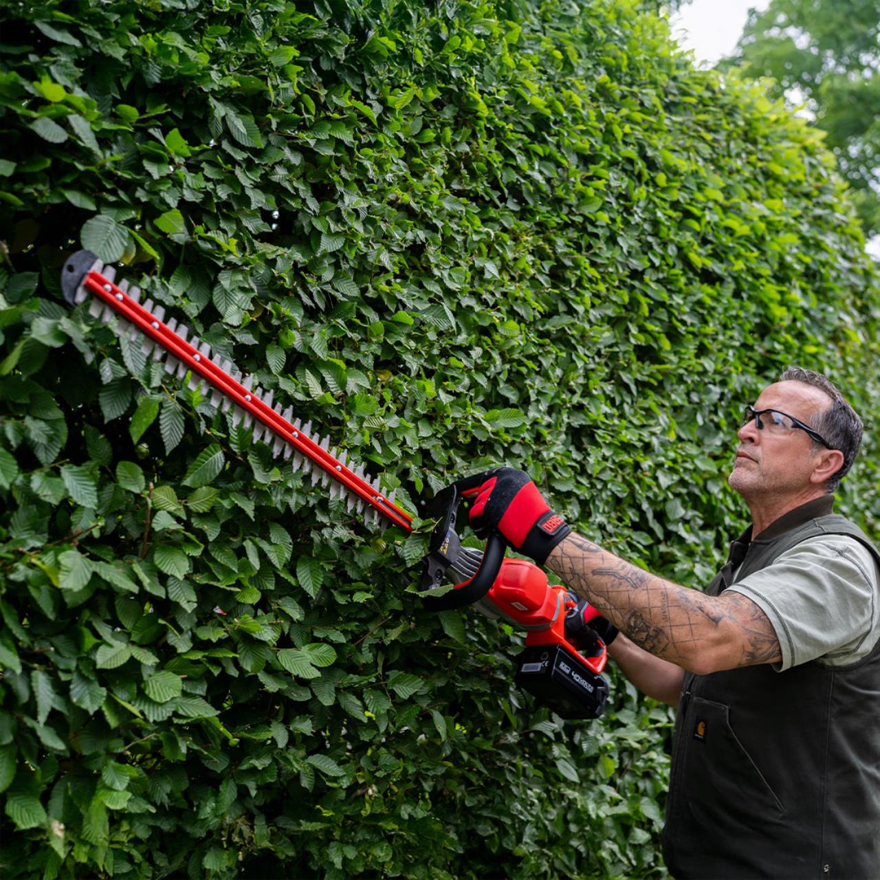 Die neue SABO Akku-Heckenschere! Mit ihrer 66 cm großen Schnittlänge, bürstenlosem Gleichstrommotor und doppelseitig geschliffenen Messern ist die HC-660 Heckenschere der optimale Partner bei der Gartenarbeit. Das robuste Magnesium-Druckguss-Gehäuse verleiht der Heckenschere eine hohe Stabilität und der in Positionen verstellbarer Griff sorgt für einfache Handhabung. Die Sabo HC-660 ist mit demselben starken 40V Akku aus dem SABO Akku-System kompatibel und wahlweise mit 4Ah oder 6Ah erhältlich.
