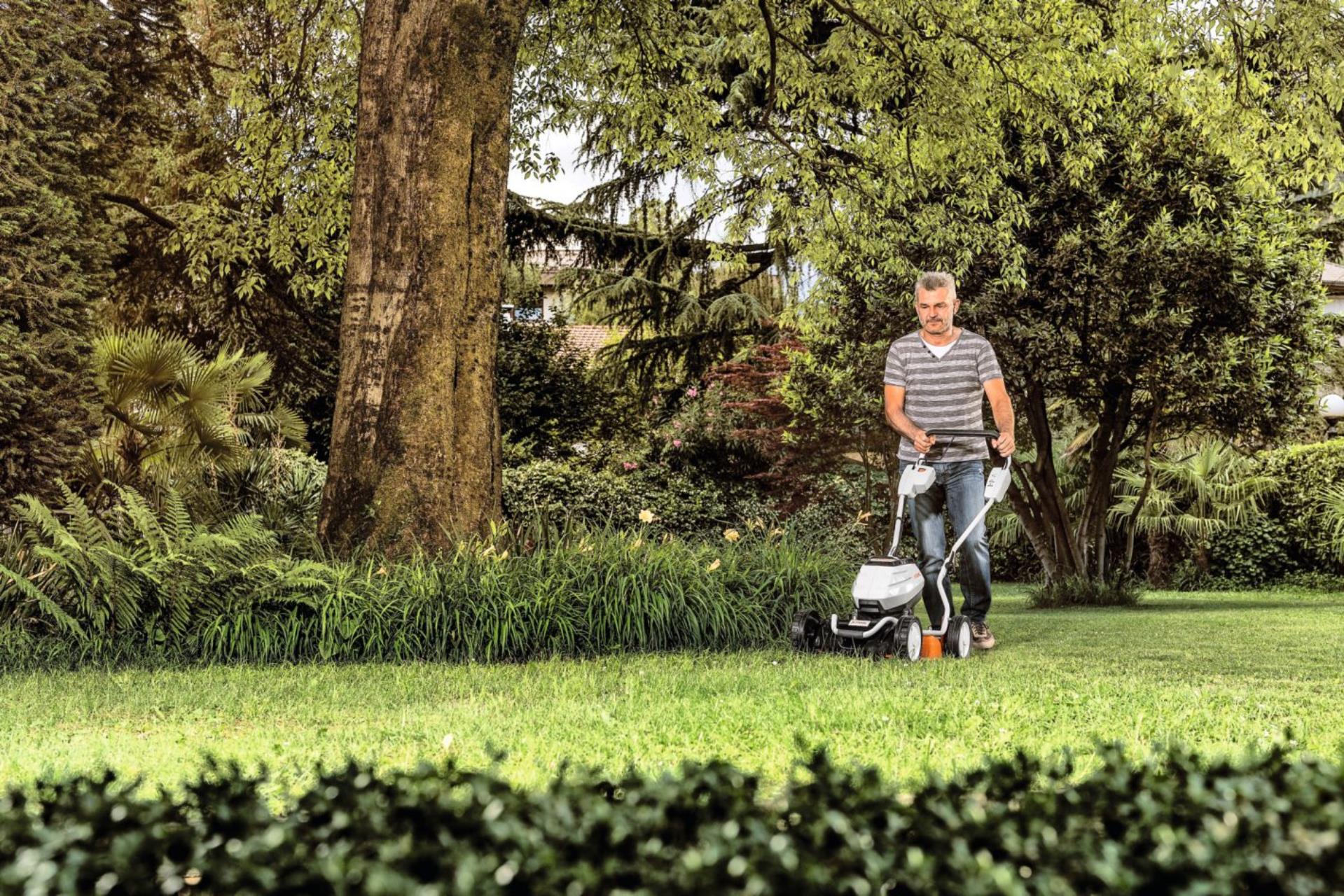 Der Mulch-Mäher STIHL RMA 2 RPV mit Vario-Antrieb kommt ohne Benzin und Kabel aus: Er wird angetrieben durch das zuverlässige STIHL AP-System, dessen hochwertige Lithium-Ionen-Akkus auch in STIHL Profi-Geräten zur Anwendung kommen. Die Akkus verfügen über ausreichend Energie, um auch mittelgroße Gärten mähen zu können. Als spezieller Mulch-Mäher ermöglicht der RMA 2 RPV ein besonders zügiges Arbeiten. Das fein geschnittene Gras verbleibt in einem Arbeitsgang als natürlicher Dünger in der Grasnarbe. Das oft übliche Leeren von Grasfangkörben entfällt dadurch. Für noch mehr Effizienz bei der Arbeit mit diesem STIHL Akku-Rasenmäher sorgt zudem sein wirtschaftlicher Eco-Modus.