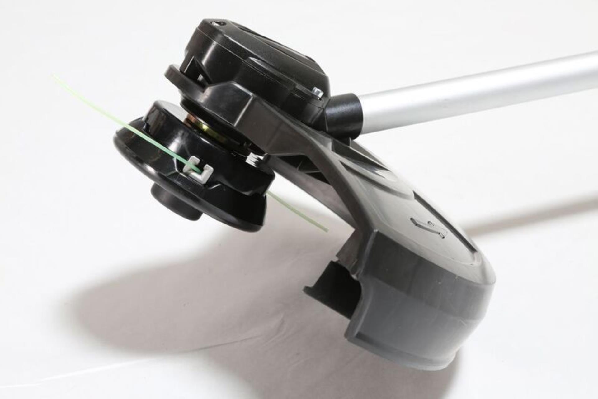 Die Akku-Sense kann wahlweise mit den leichten Schiebe-Akkus mit 2,5 oder 4,0 Ah betrieben werden. Dank des Schnellladegerätes sind sie in 38 bzw. 55 Minuten wieder voll einsatzbereit. Der Trimmer liegt angenehm in der Hand und ist komfortabel zu bedienen. Der halbautomatische Fadenkopf kann auch gegen ein Grasblatt getauscht werden. Bis zu 40 Minuten Arbeitszeit mit einem vollen 4,0 Ah Akku sind möglich. Per Knopfdruck ist der aktuelle Ladezustand des Akkus abrufbar.