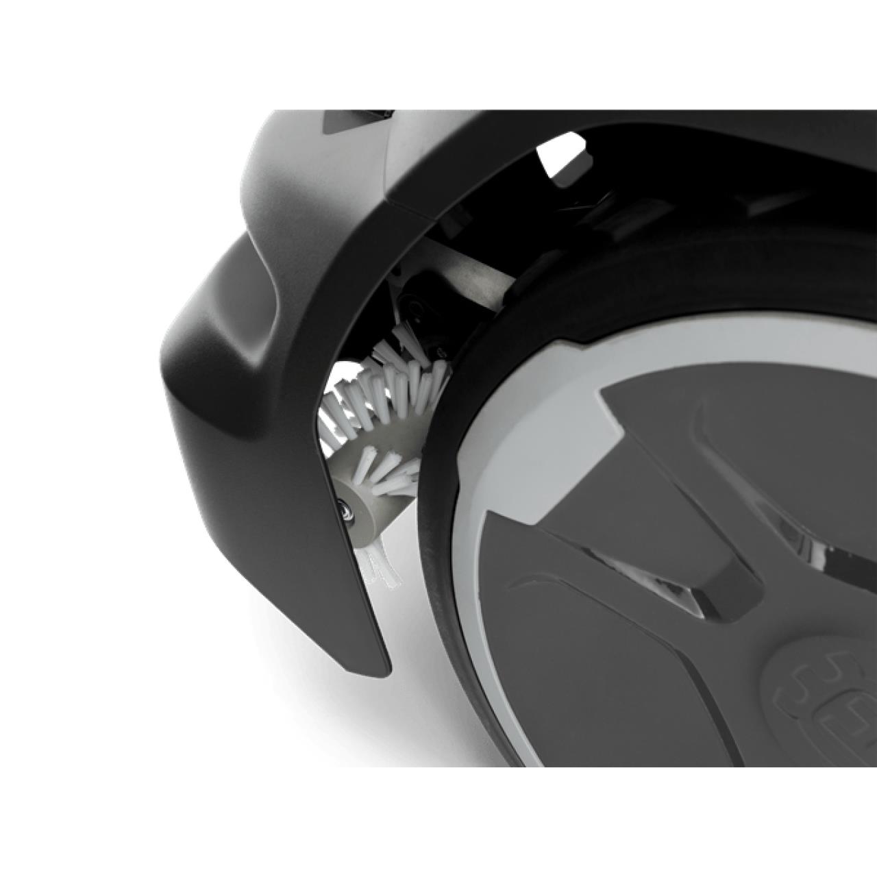 Die aktiven Radbürsten sorgen dafür, dass die Räder des Husqvarna CEORA™ nicht zu sehr verschmutzen und fördern damit auch die Weiterfahrt des Großflächenrobotermähers auch bei schlechten Wetterbedingungen. Durch die 2 Motoren werden die Radbürsten direkt angetrieben und säubern somit die Antriebsräder nicht nur passiv, wie herkömmliche Radbürsten, sondern sorgen durch die Gegenbewegung für eine aktive Reinigung.