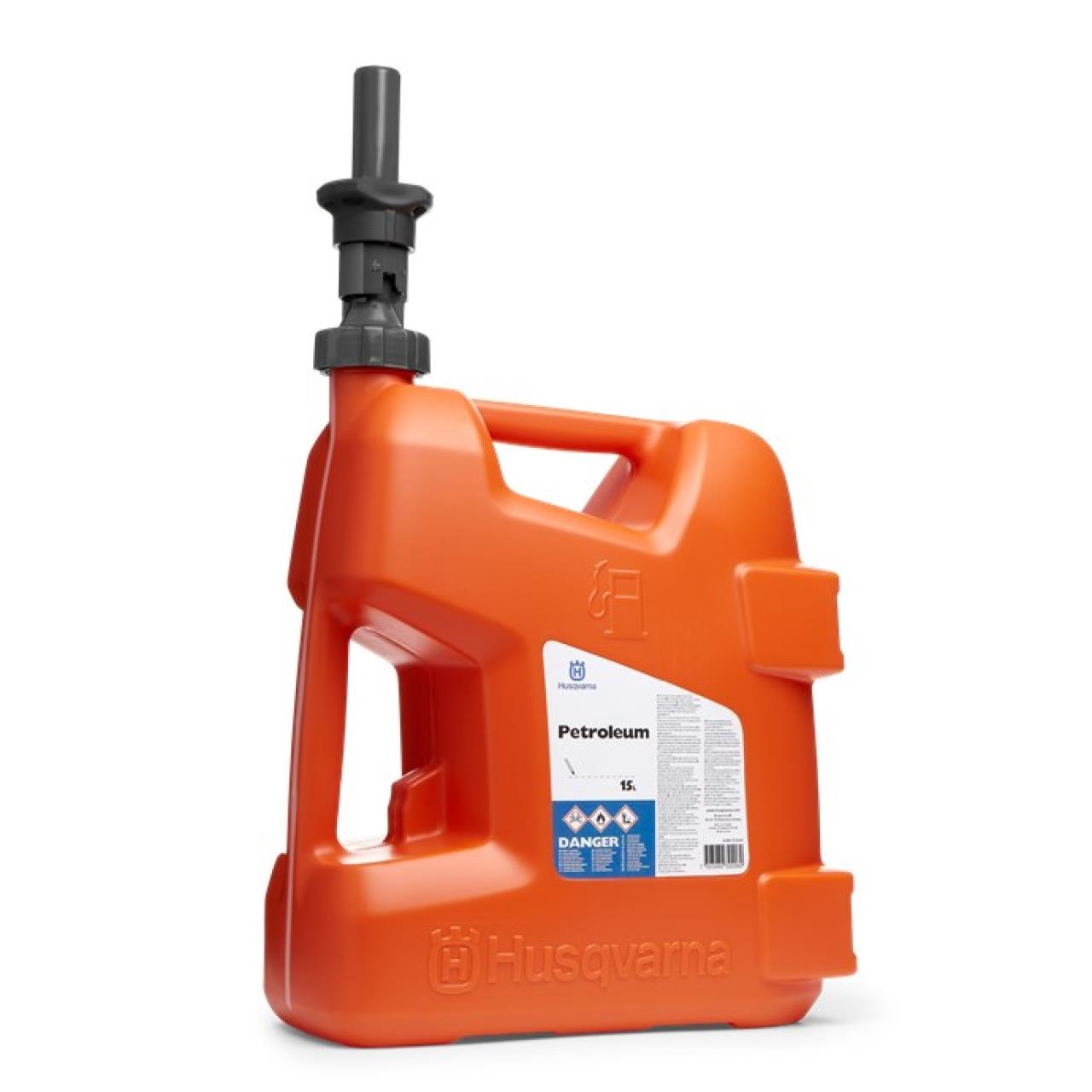 Einfach auftanken - mit dem neuen 15 Liter Kanister für radgeführte Maschinen von Husqvarna. Das spezielle Design des Ausgießers und die ergonomisch gestalteten Griffe machen das Anheben, den Transport und das Betanken mit dem Kanister extra komfortabel. Spritzen und Verschütten gehören damit der Vergangenheit an.