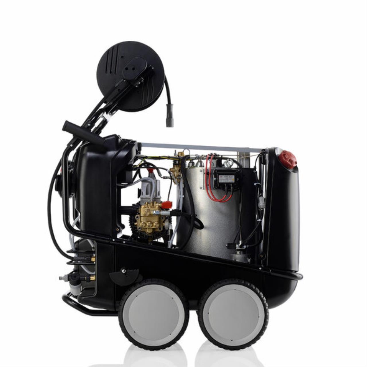Der Kränzle therm 1017 Heißwasser-Hochdruckreiniger ist für den professionellen Dauereinsatz konzipiert. Verschmutzungen wie Fett oder Öl lassen sich mit heißem Wasser leichter entfernen. Mit den therm 1017 Modellen sind Wassertemperaturen von bis zu 140° C (Dampfstufe) möglich. Der therm 1017 ist wahlweise mit oder ohne Schlauchtrommel erhältlich.