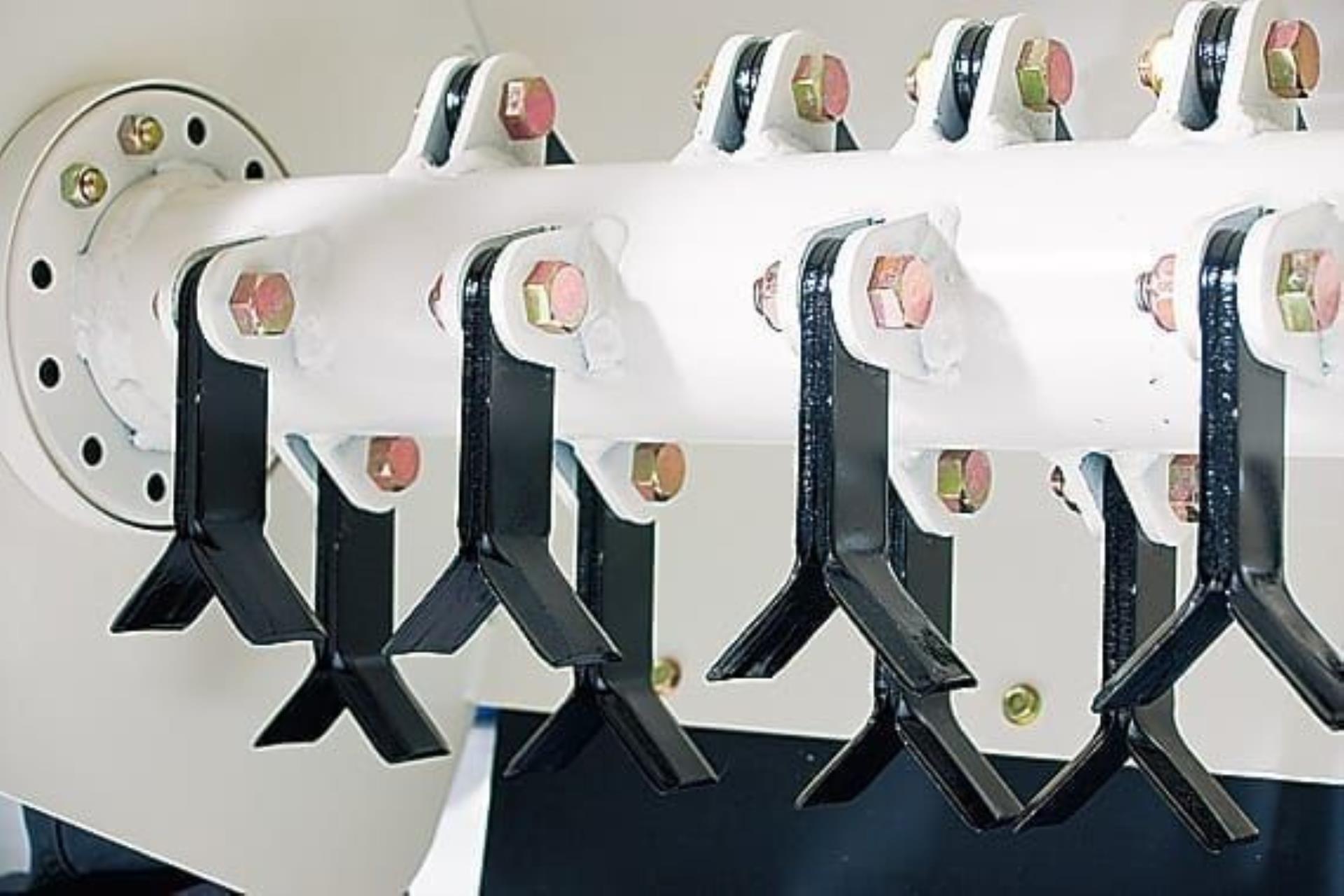 Die Herkules Schlegelmäher meistern problemlos dichtes Gestrüpp und hohes Gras. Das Schnittgut wird durch die Y-Messer besonders fein zerkleinert und gleichmäßig über die gesamte Schnittbreite abgelegt. Für perfekte Traktion auch auf weichem Boden sorgt ein speziell angeordnetes, auseinandergezogenes Ackerstollenprofil